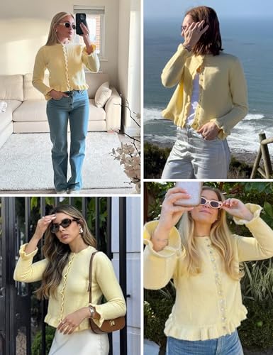 Yimoon Women's Cropped Cardigan Sweater Ruffle Frilly Long Sleeve Button Down Cute Knit Outwear 2025 Trendy 6