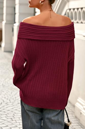 CFLONGE Women's Off The Shoulder Sweater Long Sleeve Oversized Ribbed Knit Fall Pullover Tops Winter Sexy Going Out Outfits 1