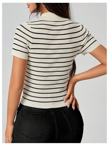 Floerns Women's Striped Short Sleeve Lightweight Cardigan Button Up Sweater Tops 1