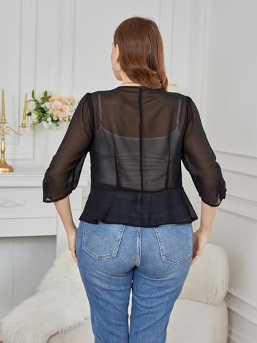 Women Plus Size Lace Shrugs Half Sleeve Cropped Cardigan Lightweight Open Front Bolero Transparent 2