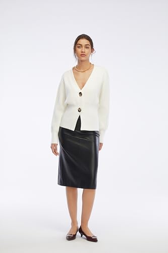 • Featured Design: It features gold leaf-shaped buttons, deep V-neck, and a classic tuxedo split hem for a refined, fashion-forward look. Designed with a slim waist, ribbed cuffs, and a sculpted hourglass silhouette, this open-front sweater flatters your figure while offering timeless versatility