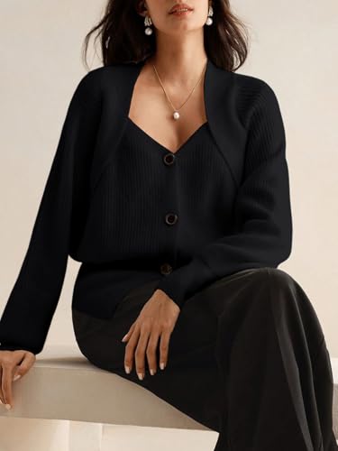 More information about Women's Button Down Cardigan Sweater V Neck Long Sleeve Casual Open Front Crochet Tops Knitted Coat