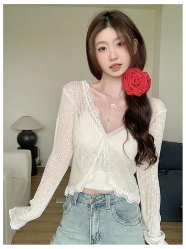 • Features: Sheer lightweight cardigan for women, One button closure, lace details, long sleeve, see through, knit cardigan outerwear
