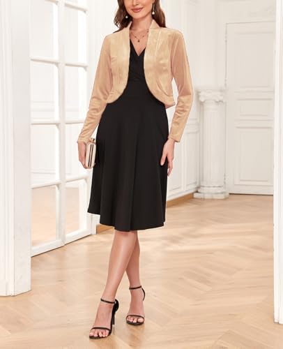 More information about Women's Long Sleeve Velvet Shrug for Dresses Cocktail Party Open Front Cropped Bolero Cardigan Top