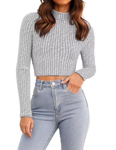 HOT ! VICHYIE Womens Fall Mock Neck Shirts Cropped Thin Sweater Long Sleeve Soft Fuzzy Pullover Jumper Tops