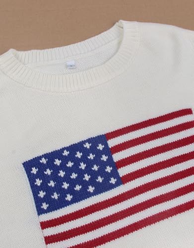 Women's American Flag Pullover Sweaters Long Sleeve Crew Neck Ligthweight Summer Sweater Apricot Medium 6