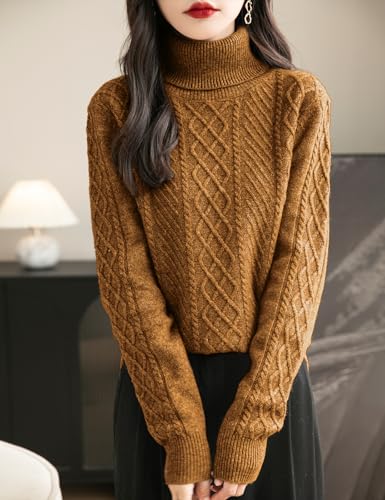 • Features: Fine 7 gauge fabric, medium thickness. Normal fit, solid color, turtleneck, long sleeves, classic cable stitch design, ribbed cuffs. High elasticity, casual style. Lightweight, warm, soft, very comfortable to wear. This merino wool sweater features a unique texture pattern that adds visual interest and charm to your winter wardrobe.