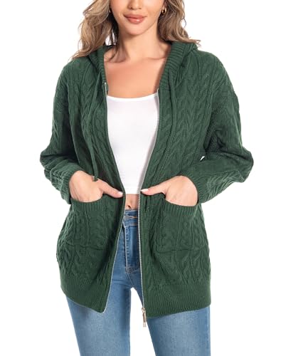 HOT ! Shineflow Women Hooded Cardigan Oversized Slouchy Zipper Cable Knit Cardigan Coat Solid Color Sweater Casual Knit Knitwear