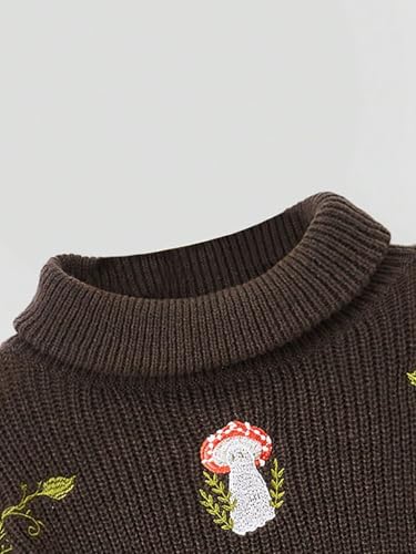SHENHE Women's Plus Size Fairy Sweater Turtleneck Lantern Sleeve Embroidered Mushroom Knitted Cropped Sweater 5