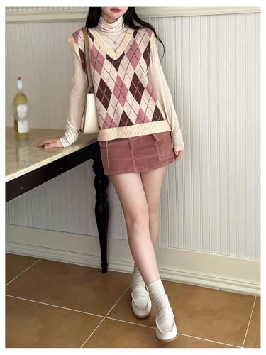 • Features: Sweater vest, argyle print, v neck, sleeveless sweater tops, y2k knit vest top