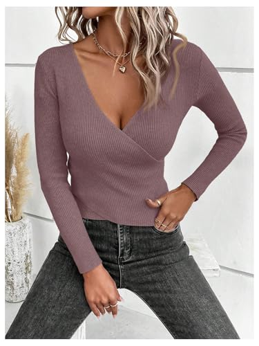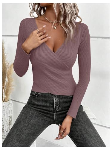 SOLY HUX Sweaters for Women V Neck Criss Cross Wrap Front Long Sleeve Sweater Knit Pullover Fall Tops 6