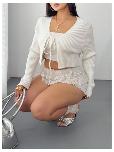 SOLY HUX Women's Plus Size Tie Front Ribbed Cardigan Long Sleeve Shirts Crop Sweaters Fall Clothes 4