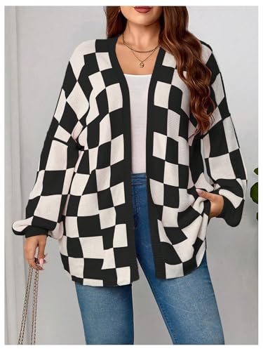 SOLY HUX Women's Plus Size Plaid Cardigan Sweaters Checkered Long Sleeve Open Front Knit Cardigans 1