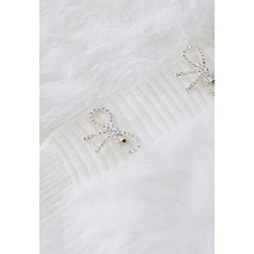 More information about CHICWISH Women Crop Fuzzy Cardigan Bowknot Brooch Button Knit Cardigans Open Front Long Sleeves Sweater Tops