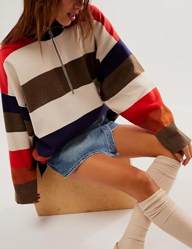 • Feature: The striped sweater for women features zip-front neckline, ribbed hems, dropped shoulders. This timeless pullover is featured in an oversized, relaxed fit color bolck with long sleeve throughout for a classic.
