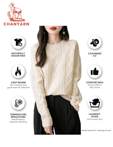 • Features: Fine 5 gauge fabric, thick. Normal fit, solid color, crew neck, long sleeves, classic cable stitch design, ribbed cuffs. High elasticity, casual style. Lightweight, warm, soft, very comfortable to wear. This merino wool sweater features a unique texture pattern that adds visual interest and charm to your winter wardrobe.