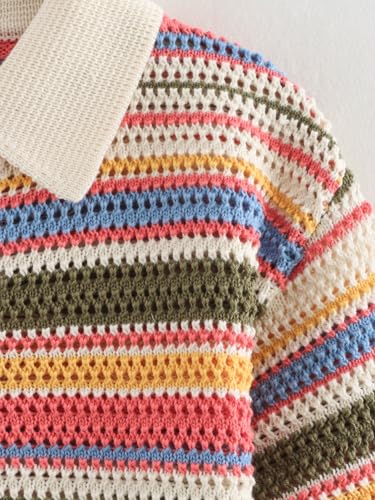 More information about Womens Cropped Short Sleeve Polo Sweater Striped Button Up Collar Knit Tops Crochet T Shirt