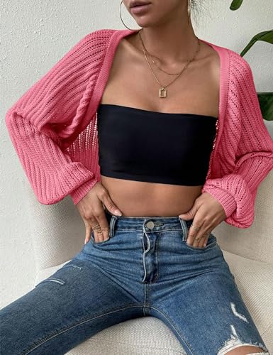 HOT ! Womens Crochet Cropped Cardigan Sweaters Open Front Lightweight Summer Long Sleeve Knit Bolero Shrug for Dress