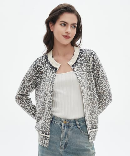 • Features: This women's leopard casual knit cardigan features a loose fit, classic round neck, front button closure, raised seams, ribbed cuffs, creating a timeless and elegant look.