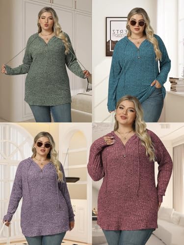VISLILY Womens-Plus-Size-Hoodies Button V Neck Lightweight Knit Sweaters Casual Long Sleeve Tops Drawstring Hooded Sweatshirt 5