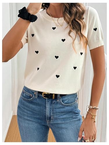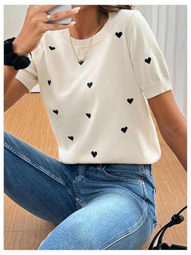 • Features: Casual sweater pullovers for women, heart pattern, round neck, short sleeve, comfy knitwear