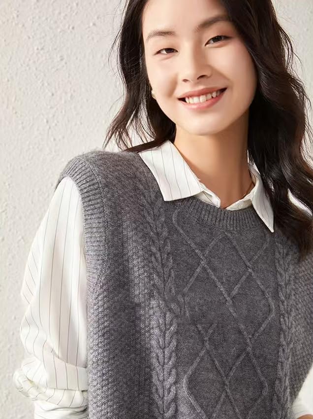 100% Merino Wool Sweaters Women's Female Fall Winter Knitted Pullover Crew Neck Waistcoat Sleeveless Vest(WQ7050) 4