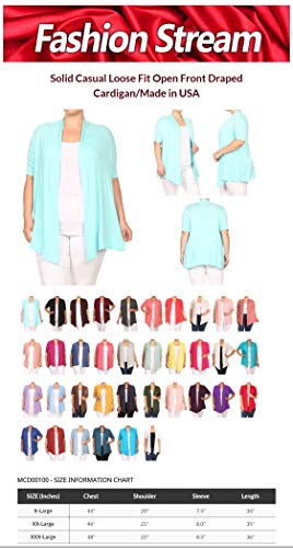 Plus Size Solid Print Casual Short Sleeve Draped Open Front Cardigan/Made in USA Plum 2XL 2