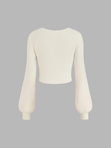 More information about CIDER Women’s Crop Top Sweater Square V Neck Lantern Sleeve Cute Rib Knit Pullover