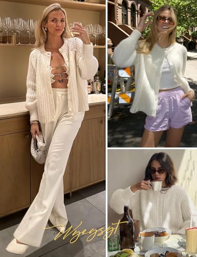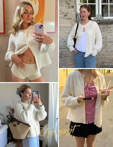 HOT ! Wyeysyt Womens Cardigan Sweater Button Down Long Sleeve Chunky Soft Knit Sweater Fall Open Front Loose Casual Cardigan Coat(Beige-L)