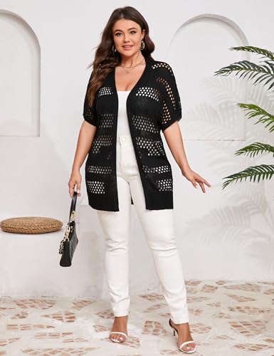 Summer Crochet Cardigan Plus Size Women Short Sleeve Open Front Knitted Cardigans Lightweight Cover Up for Beach 5
