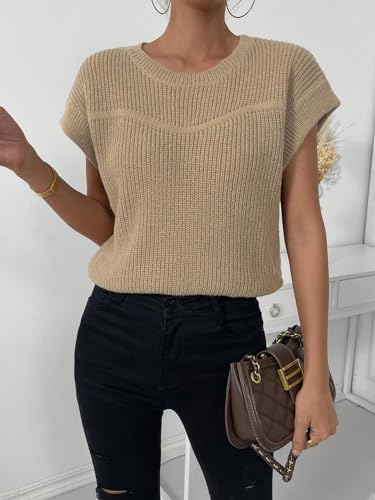 HOT ! SweatyRocks Women's Casual Cap Sleeve Vest Sweater Round Neck Solid Knit Tank Tops