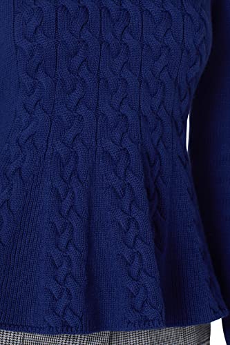 • A flattering peplum hem and luxe cable knitting make this camel Jason Wu Collective the perfect sweater.