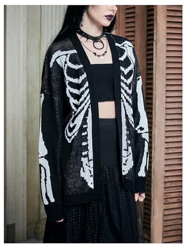 • Features: Knit cardigan for women, skeleton graphic, open front, long sleeve, grunge sweaters