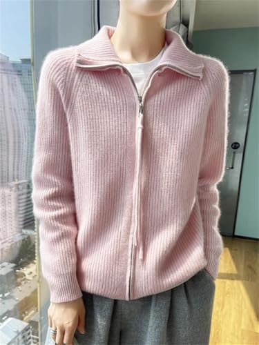 HOT ! Womens Merino Wool Knit Cardigan Lapel Long Sleeve Zip Sweater Casual Warm Lightweight Top
