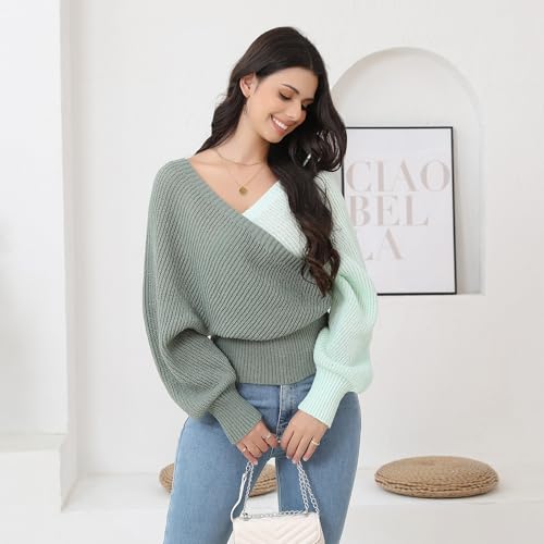 More information about Women's Wrap V Neck Knit Sweaters Batwing Long Sleeve Cross Front Drop Shoulder Fall Pullover Tops