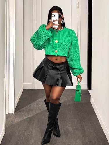 SEGT Women's Women's Chunky Knit Crew Neck Short Cardigan Button Long Sleeve Sweater Comfortable Knit Outerwear 5