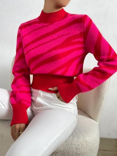 HOT ! Floerns Women's Casual Mock Neck Graphic Pattern Pullover Long Sleeve Knit Sweater