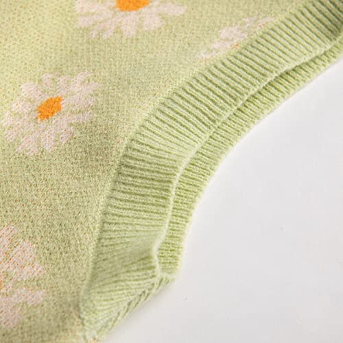 • ❀❀Flower v neck knitwear tank top----:The inner wear can be a t-shirt or blouse,looks great with high waisted.This cute sleeveless sweater vest has delicate fashion spring color and preppy style design. looks great with high waisted jeans,skinny jeans,shorts,skirts or leggings. Delicate and meanwhile casual.It’s modern yet vintage, channeling a 90’s style. sleeveless freedom look, v neck cropped sweater. knitwear,aesthetic clothes.