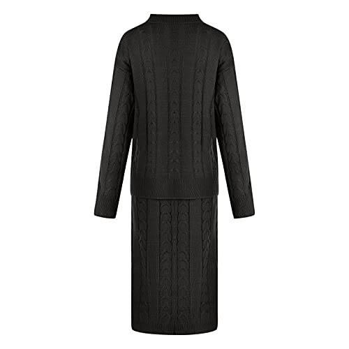 NaRHbrg Plus Size Sweater for Women's Winter Chunky Cable Knit Long Skirt 2 Piece Outfit Sweater Sets Warm Casual Suit 5