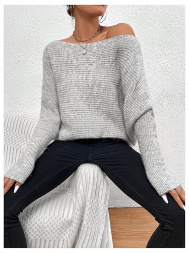 More information about Verdusa Women's Off The Shoulder Sweater Long Dolman Sleeve Loose Knit Tops