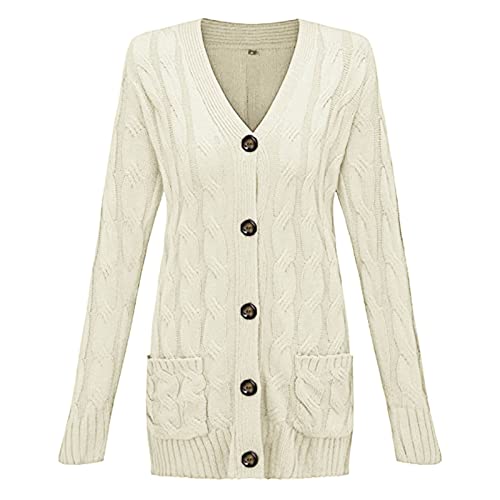 HOT ! Womens Cardigan Sweaters with Pockets Fall Long Sleeve Knit Sweater Open Front Cardigan Button Down Loose Outerwear