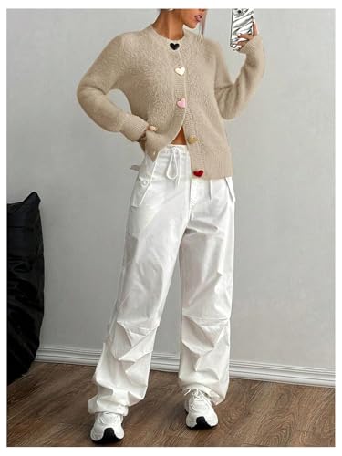 GORGLITTER Women's Heart Button Open Front Cardigan Lightweight Fuzzy Cardigan Sweaters Long Sleeve Knit Top Outerwear 4