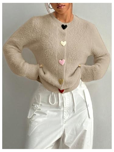 GORGLITTER Women's Heart Button Open Front Cardigan Lightweight Fuzzy Cardigan Sweaters Long Sleeve Knit Top Outerwear 1
