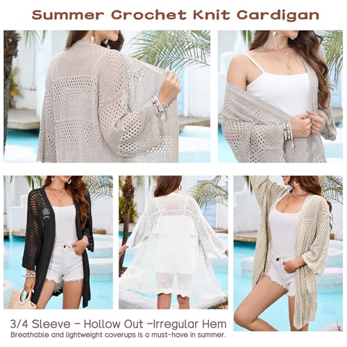 • Trendy Features - This lightweight summer cardigan features with charming hollow out design, casual 3/4 sleeve, lovely irregular hem and timeless solid color. Perfect for layering, this crochet sweater cardigan is a must-have for any fashion-forward wardrobe.