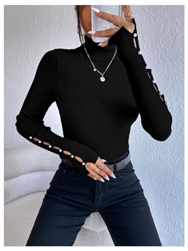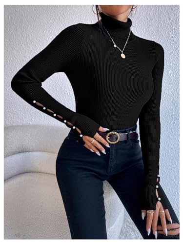 • Features: Rib knit, turtleneck, cutout, long sleeve, button, slim fitted, cropped, elegant sweaters for women