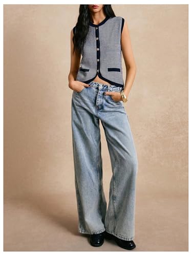 GORGLITTER Women's Striped Button Up Cropped Sweater Vest Sleeveless Knit Vest Tops 2025 Trendy Outfits 2
