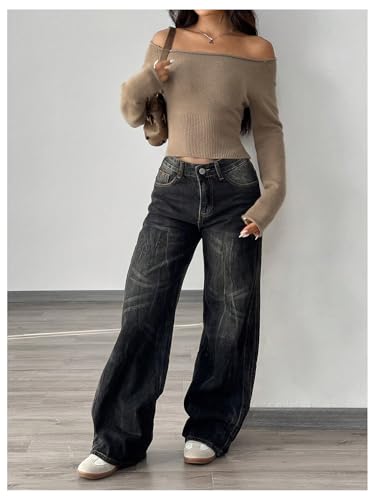 More information about MakeMeChic Women's Off The Shoulder Rib Knitted Crop Top Long Sleeve Slim Fit Pullover Sweater
