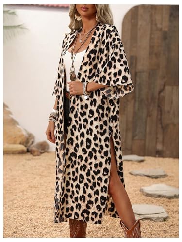 MakeMeChic Women's Leopard Print Lightweight Cardigan Open Front Half Sleeve Cardigans Shirt 6
