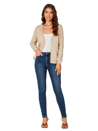 More information about LYANER Women's Cotton Fall V Neck Open Front Cardigan Ribbed Knit Button Down Long Sleeve Sweater Top