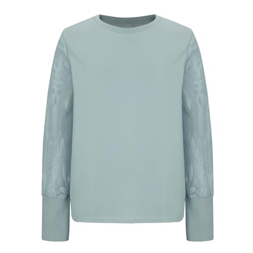 HOT ! Waffle Knit Tops for Women Sunflower Lace Mesh Long Sleeve Sweater Crewneck Pullover Tee Shirt Lightweight Blouse